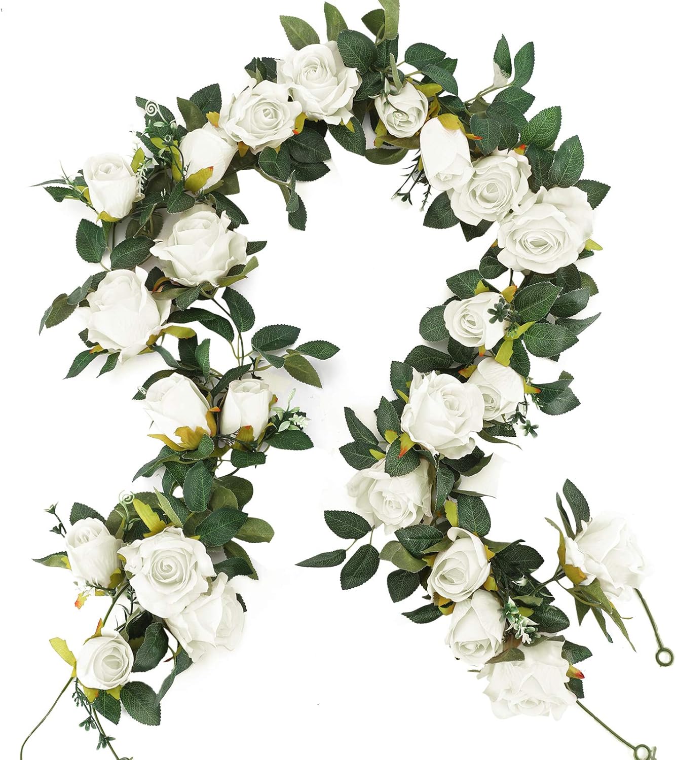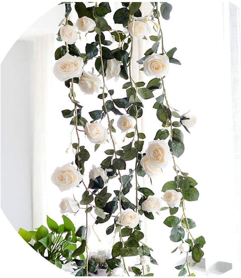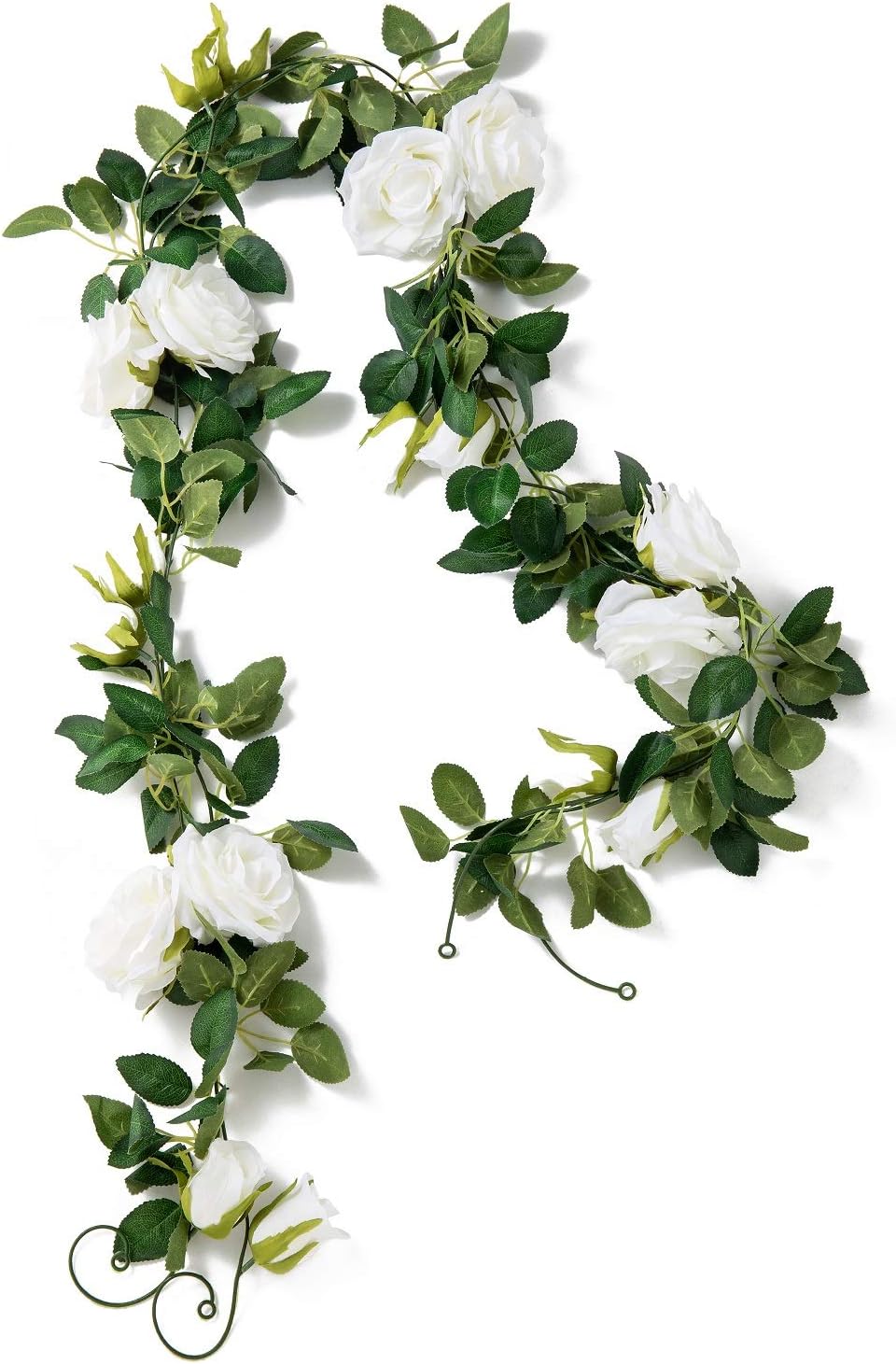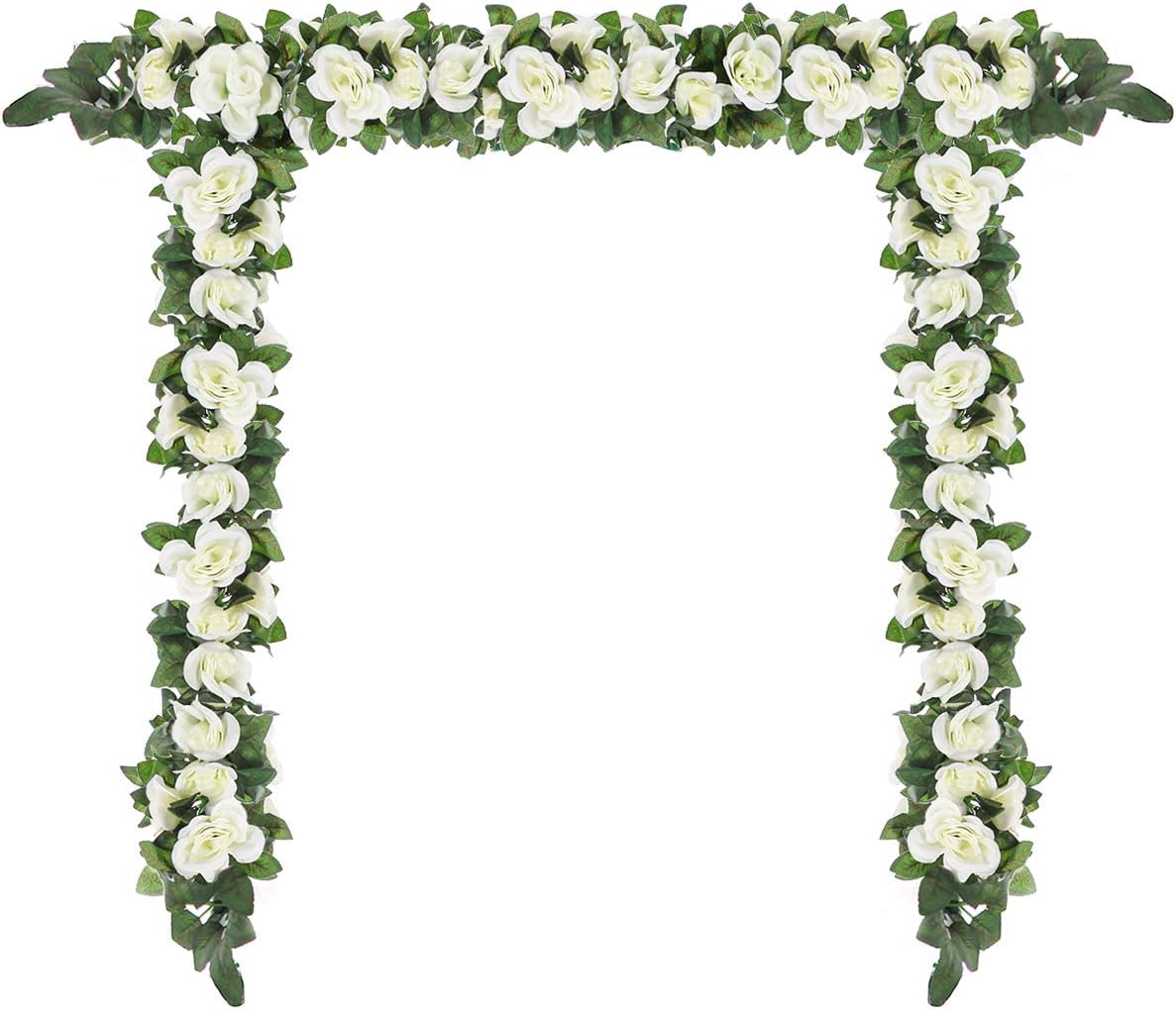 Amazon Com Lesing Rose Garlands Artificial Rose Vines 4pcs 28 8ft Fake Silk Flower Garlands With Greenery Plants Wedding Hanging Flower Vines Garlands For Home Office Arch Garden Decoration White Home Kitchen