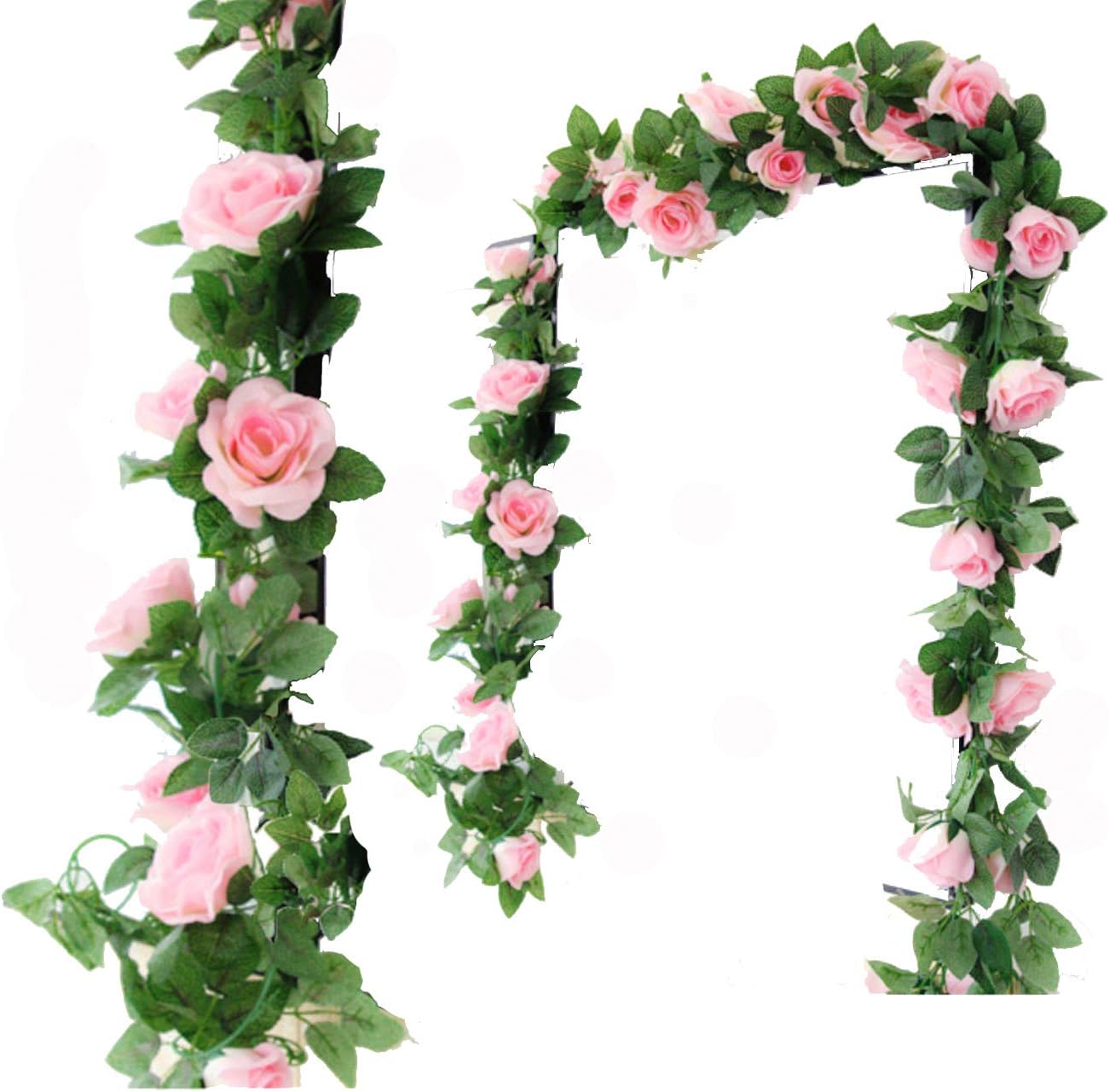 Amazon Com Lannu 2pcs 15 Ft Artificial Rose Vine Garland Flowers Fake Flower Plants For Wedding Home Garden Party Hotel Decor Pink Kitchen Dining