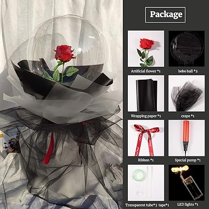 Amazon Com Whaline Luminous Balloon Rose Bouquet 22 Inch Led Light Up Bobo Ball With Rose Set Wedding Glow Bubble Balloons With String Lights For Girl Women Valentine S Day Anniversary Birthday Gift Black