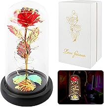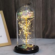 Enchanted Rose Flower Lamp Beauty And The Beast Rose Rose In Glass Dome Gold Base Flower Lamp L Enchanted Rose Birthday Lights Flower Lamp