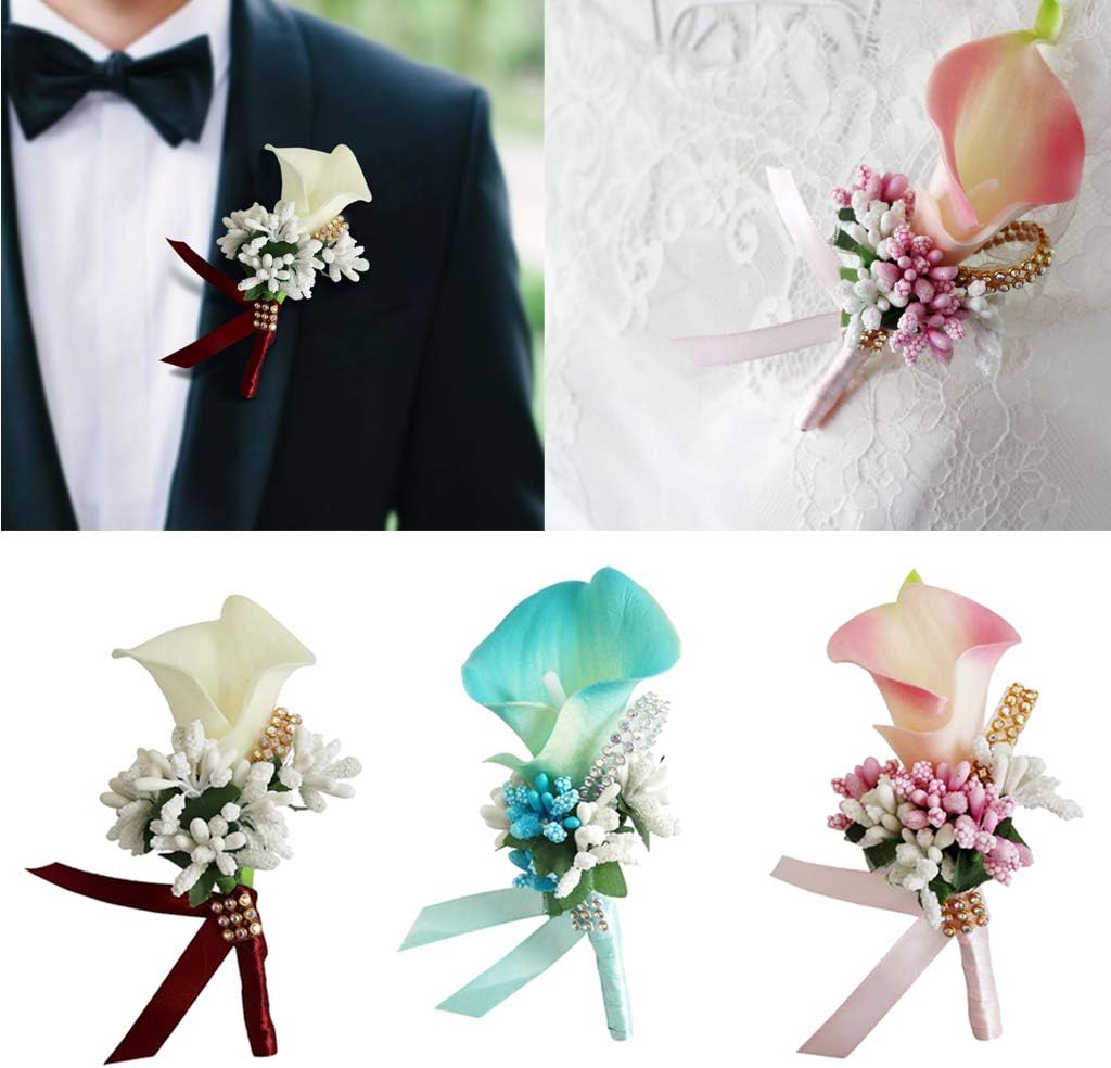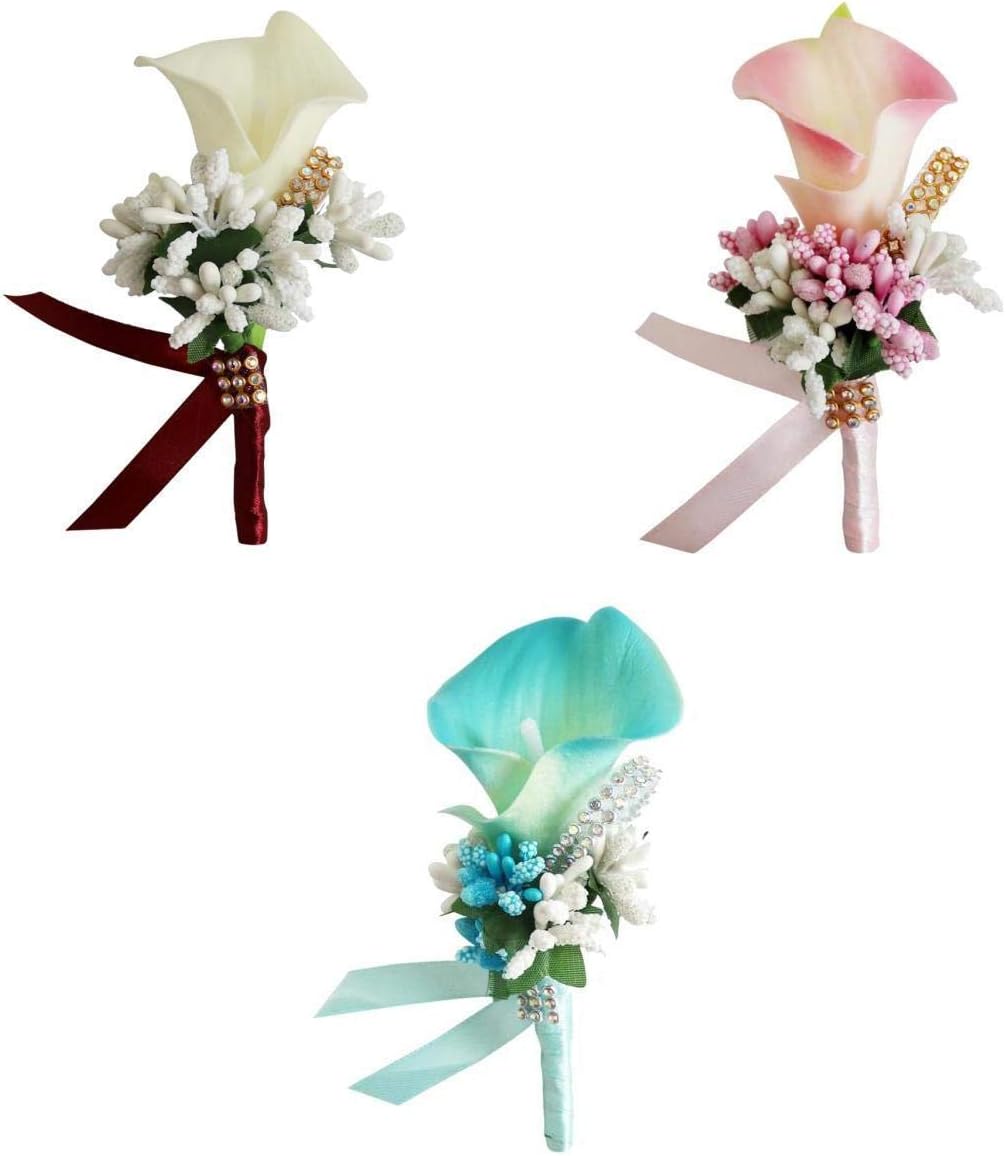 Amazon Com Joymerit 3 Pieces Flower Men Boutonniere Handmade Silk Calla Lily Men Corsage For Groom Wedding Parties Suit White Pink And Blue Home Kitchen