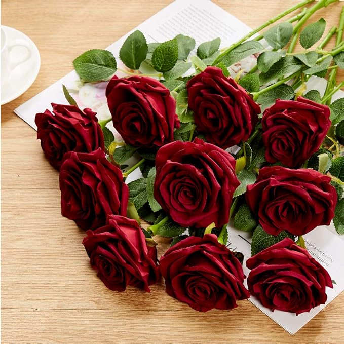 Amazon Com Kislohum Burgundy Artificial Roses 10pcs Faux Burgundy Roses Wedding Flowers For Wedding Bridal Show Party Baby Shower Centerpieces Flowers Decor Diy Project Home Kitchen