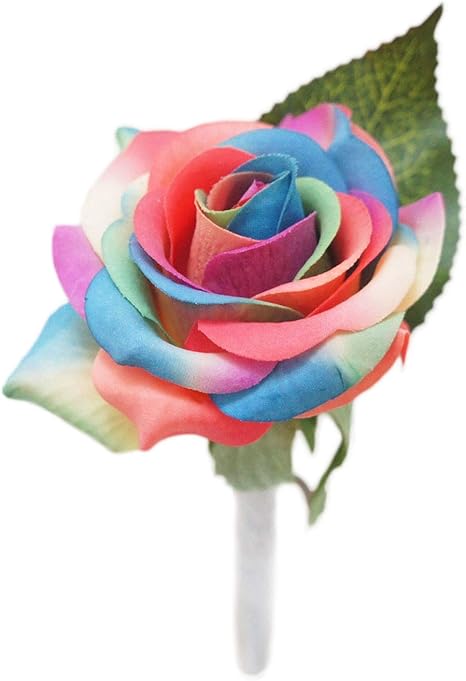 Amazon Com Lily Garden Silk Rainbow Rose Flowers Bouquet Boutuniere Boutonniere B Home Kitchen
