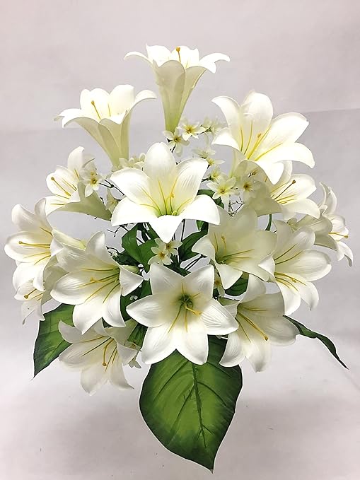 Amazon Com Silk Flower Garden 15 Heads Easter Lily Bouquet Cream Home Kitchen