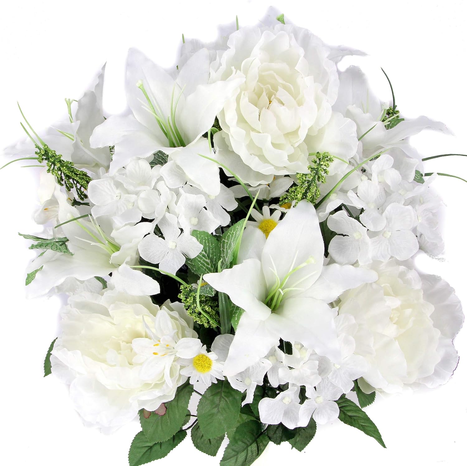 Amazon Com Admired By Nature Artificial Full Blooming Tiger Lily Peony Hydrangea With Green Foliage Mixed Flowers Bush White Home Kitchen