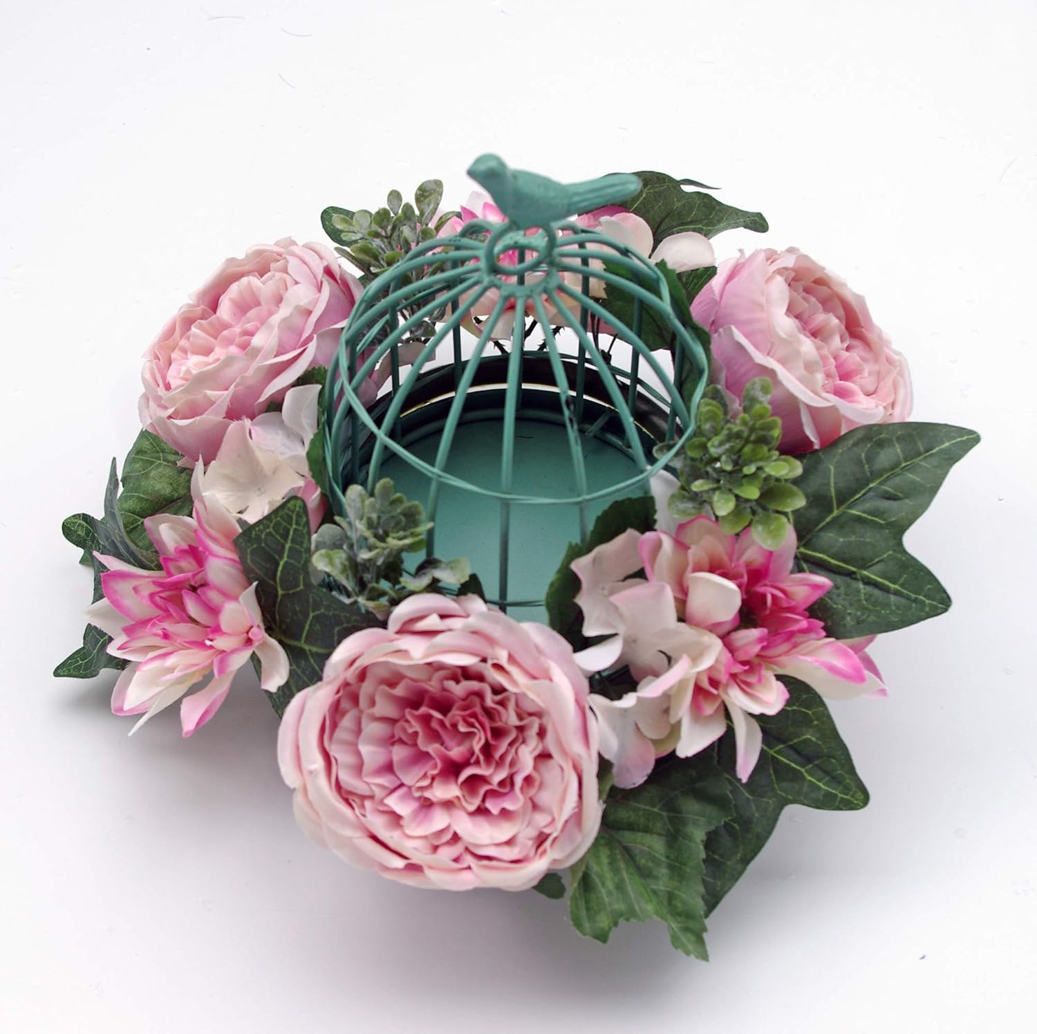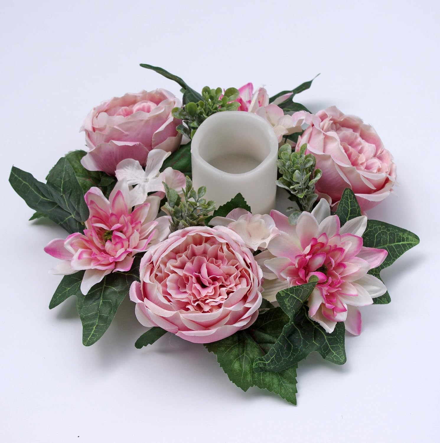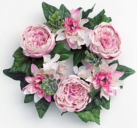 Amazon Com Es Essentials Pink Cabbage Rose Dahlia Hydrangea Small Wreath Spring Summer 6 Candle Ring Home Kitchen