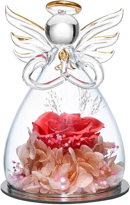 Amazon Com Anlunob Forever Rose Angel Figurines With Preserved Real Flesh Pink Flowers Handmade Angels Gifts For Women Girls Eternal Flowers Decor For Mother S Day Wedding And Anniversary Birthday Home Kitchen