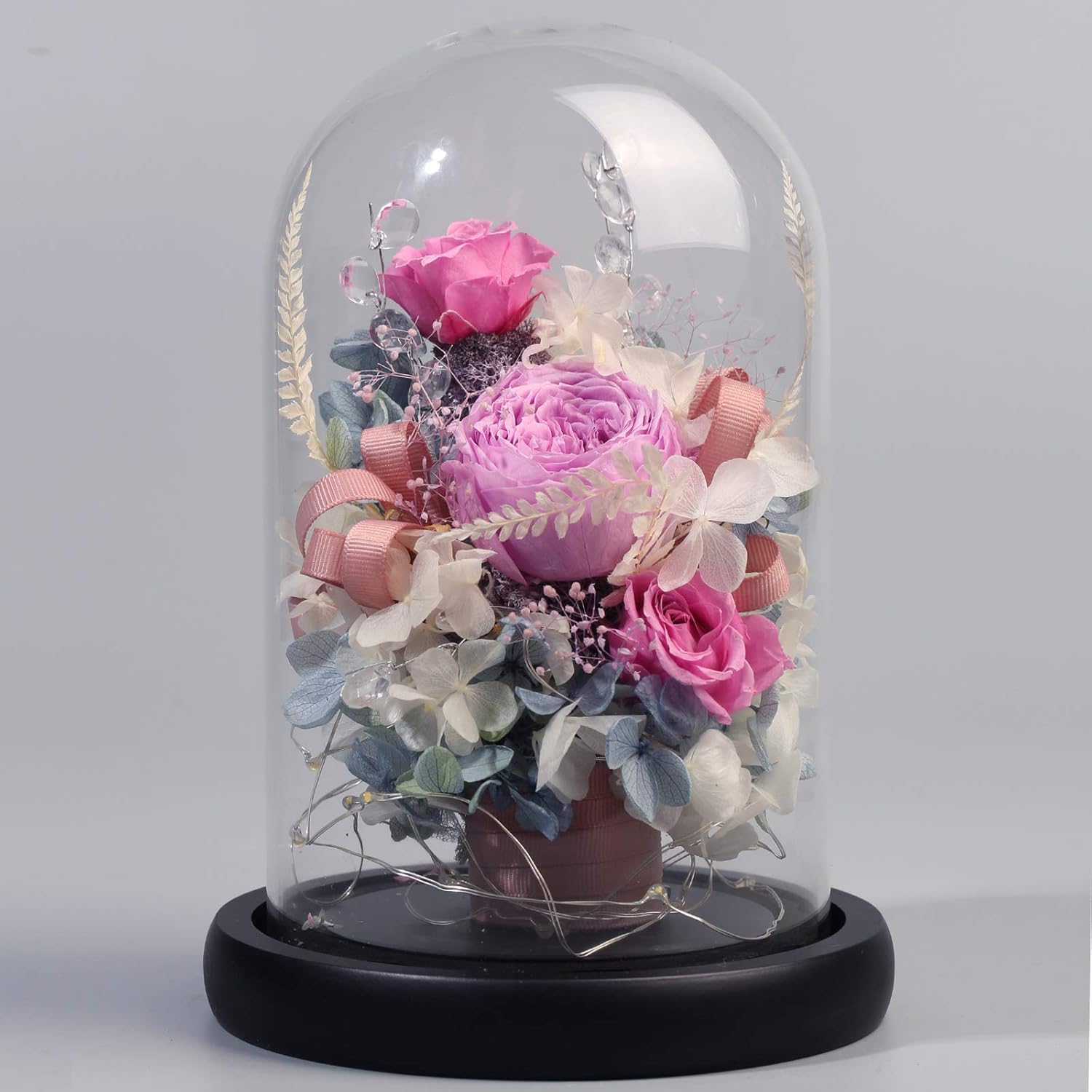 Amazon Com Anlunob Preserved Fresh Flower With Led Light Handmade Rose Mother Day Forever Rose Gift In Glass Dome Valentine S Day Kitchen Dining