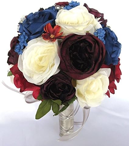 Amazon Com Wedding Bouquet 17 Piece Bridal Bouquet Set Silk Flower Bouquet Burgundy Navy Navy Blue Wine Cascade Bouquet Bridesmaid Flowers Rosesanddreams Home Kitchen
