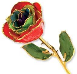 A red rose is the traditional symbol for love and romance and a special way to say I love you The red rose has long symbolized beauty and perfection. This real red rose is preserved in lacquer and trimmed in 24k gold. Packaged in a lovely gift box these unique natural flowers create a gift that will be treasured for years to come.