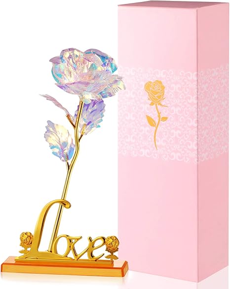 Amazon Com Keriqi Galaxy Rose Rainbow Flower Gift For Mom Wife Women 24k Gold Artificial Colorful Rose With Love Shape Base Gift Box For Mother S Day Thanksgiving Day Anniversary Valentine S Day Christmas Kitchen