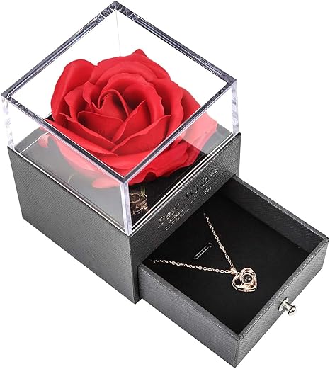Amazon Com Xjsgs Necklace Rose Gift Box With 100 Languages Preserved Eternal Real Rose Handmade For Women S Valentine S Day Wedding Anniversary And Birthday Gifts Necklace 1 Kitchen Dining