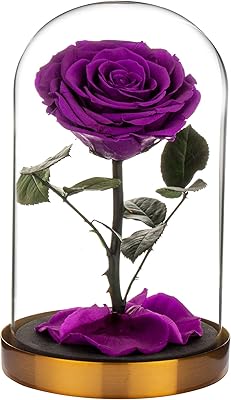 Amazon Com Liumoly Eternal Rose Made From Real Rose Last For Years Forever Preserved Flowers Enchanted Fresh Rose In Glass Dome With Gift Box For Her Valentine S Day Mother S Day Anniversary Purple Kitchen Dining