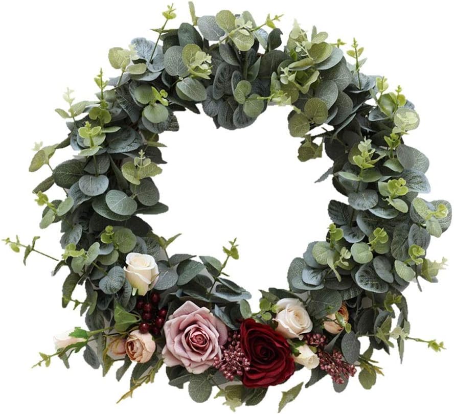 Amazon Com Anchor1 Artificial Rose Wreath Eucalyptus Garland For Front Door Wedding Home Wall Decor Home Kitchen