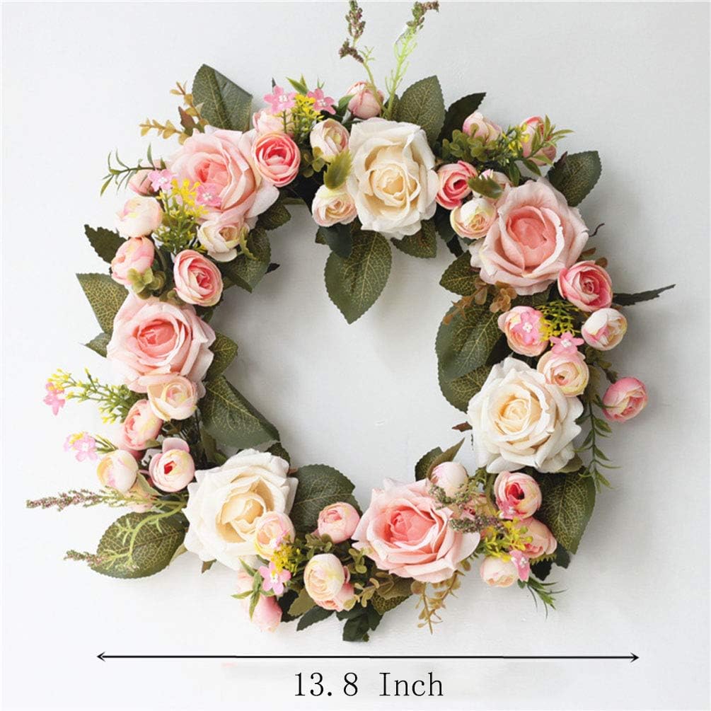 Amazon Com Lemon Floral Artificial Rose Flower Wreath 15 7 Pink Flower Door Wreath With Green Leaves Spring Wreath For Front Door Wedding Wall Home Decor Pink Home Kitchen