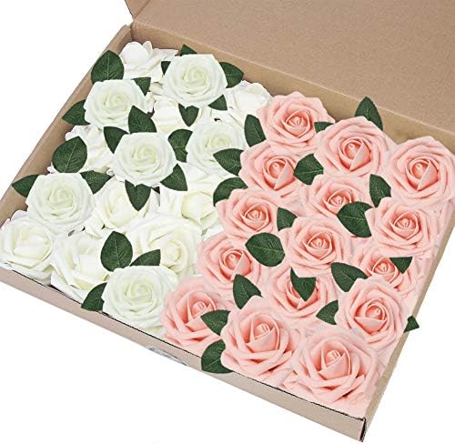Aokbean 50 pcs Real Looking PE Foam Rose Artificial Flowers Wedding Party Favors Home Decoration for DIY Wedding Bouquets Centerpieces Arrangements (Pink + Ivory). 50PCS Artificial Roses White Roses Fake Roses for Wedding Decorations Bouquets Home Decorations15 inch Diameter 1. Artificial Foam Rose DIY Flowers Head Wedding Bride Bouquet Party Decor B079. US 50pcs Artificial Flowers Real Looking Foam Rose Decoration DIY for Wedding.