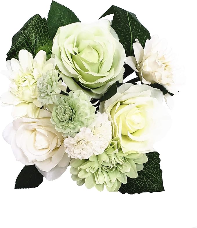 Amazon Com Becor Fake Flowers Bouquet Artificial Silk Rose Carnation Plant With Leaves For Wedding Home Party Table Decor 10 Flowers Per Bunch 8 Stems Per Pack White Green Home Kitchen