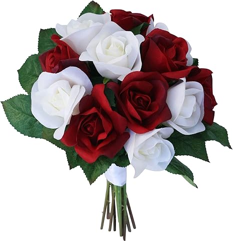 Amazon Com Thebridesbouquet Artificial Red Ivory Silk Rose Stems 12 Roses With Customize Ribbon Fake Flowers Bouquets For Wedding Hall Decoration Gift For Bridesmaids Valentine Day And Lover Medium Home