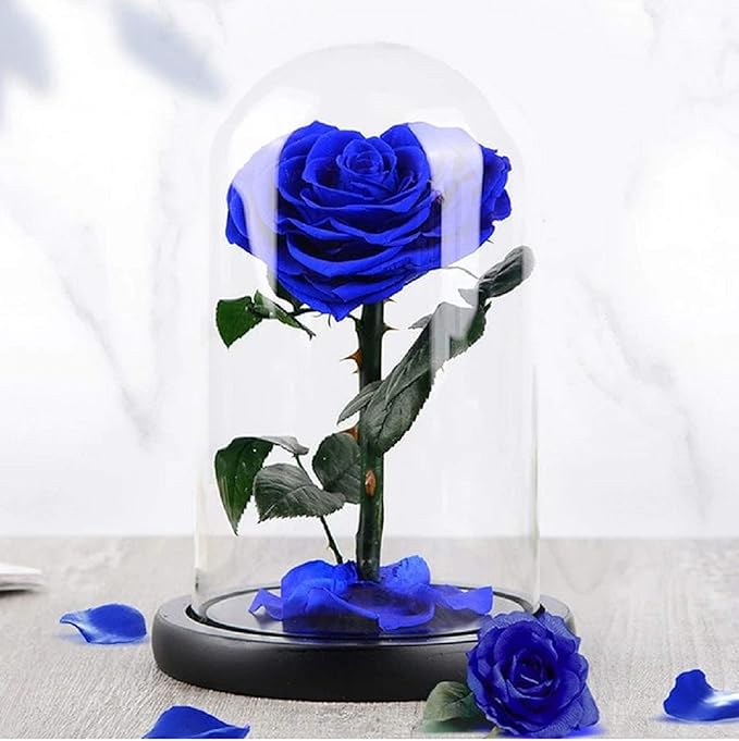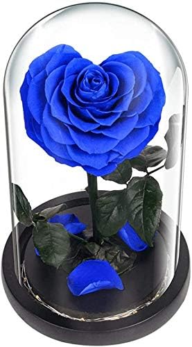 Amazon Com Preserved Rose Heart Shape Design Beauty And The Beast Rose In Glass Dome Immortal Enchanted Eternal Rose For Wedding Artificial Flowers Valentines Blue Kitchen Dining