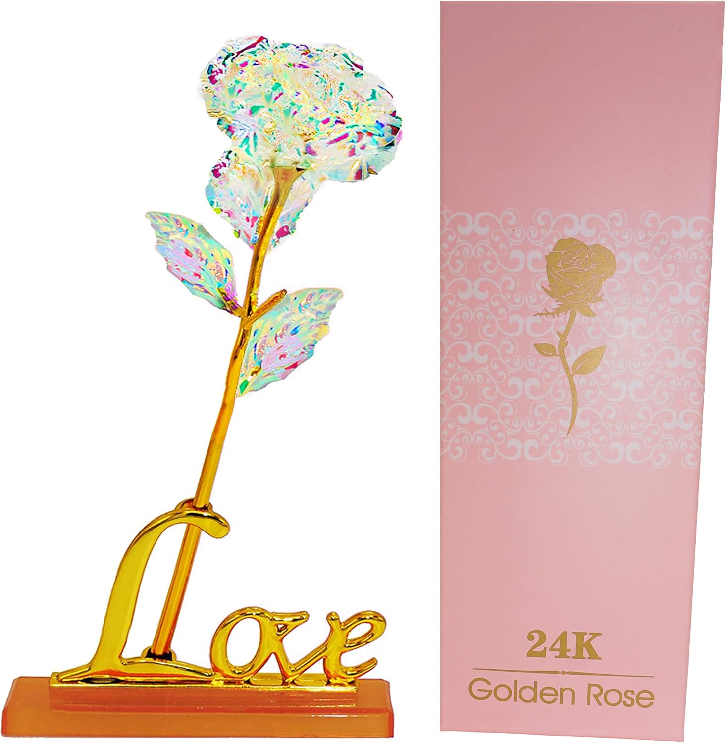 Amazon Com Galaxy Rose Artificial Foil Flower Gift With Stand Colorful Plastic Crystal Infinity Forever Rose Gold Look Stem For Girlfriend Wife Women Her For Valentine S Day Mother S Day By 4e S Novelty