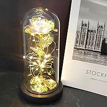 New Listing Artificial Galaxy Gold Foil Rose Forever Flowers w Love Base Stand Birthday Gift. Give your lover the gift of a rose without all the side-effects like dying quickly or fading. It is a special way of telling her or him Love you more as time goes by Hand Made with Love Filled with 20 LED fairy lights Encased by a glass dome Creates a warm ambient light Features a charming carved.