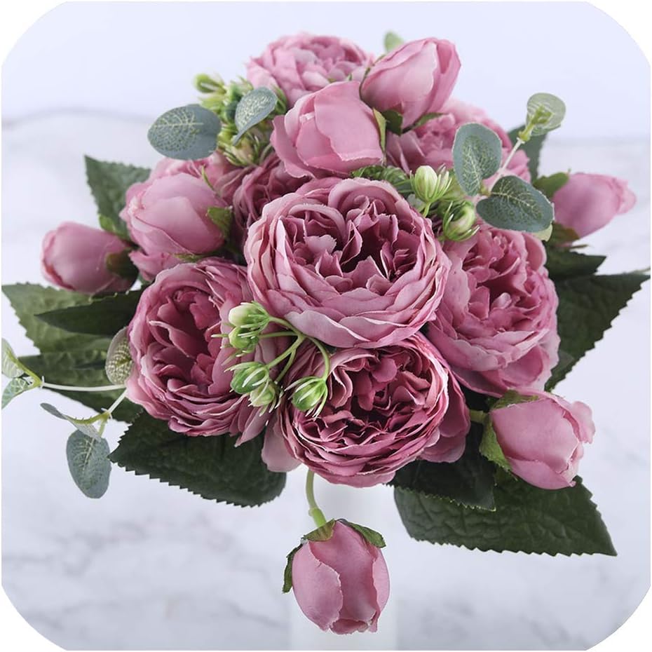 Limited Time Sale Easy Return. These flowers are so authentic looking your guest will literally stop. 30cm Pink Silk Peony Artificial Flowers Bouquet 5 Big Head and 4 Bud Cheap Fake Flowers for Home Wedding Decoration indoor A4918.