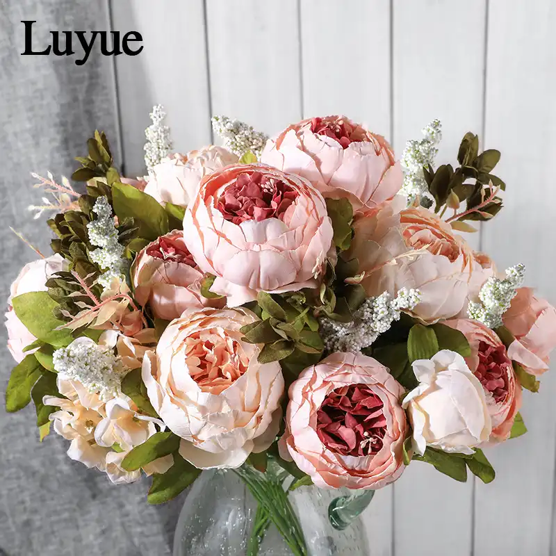 Luyue Artificial Flowers Wedding Vintage European Peony Wreath Silk Fake Flowers Heads Home Festival Decoration 13 Branches Peony Wedding Artificial Flowers Vintageartificial Flowers Aliexpress