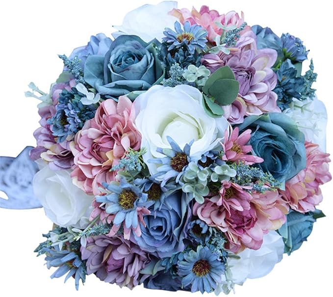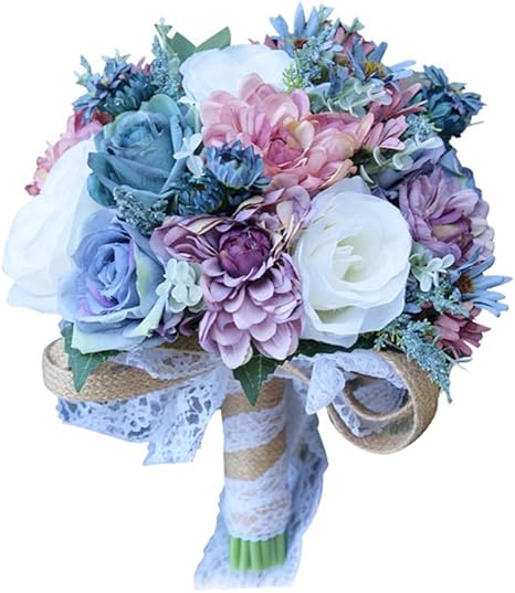 Amazon Com Florashop Bridal Holding Wedding Bouquet Mixed Fabric Flowers Bridal Wedding Throw Bouquet For Wedding Brides Bridesmaid Wedding Hold Flower Blue Home Kitchen