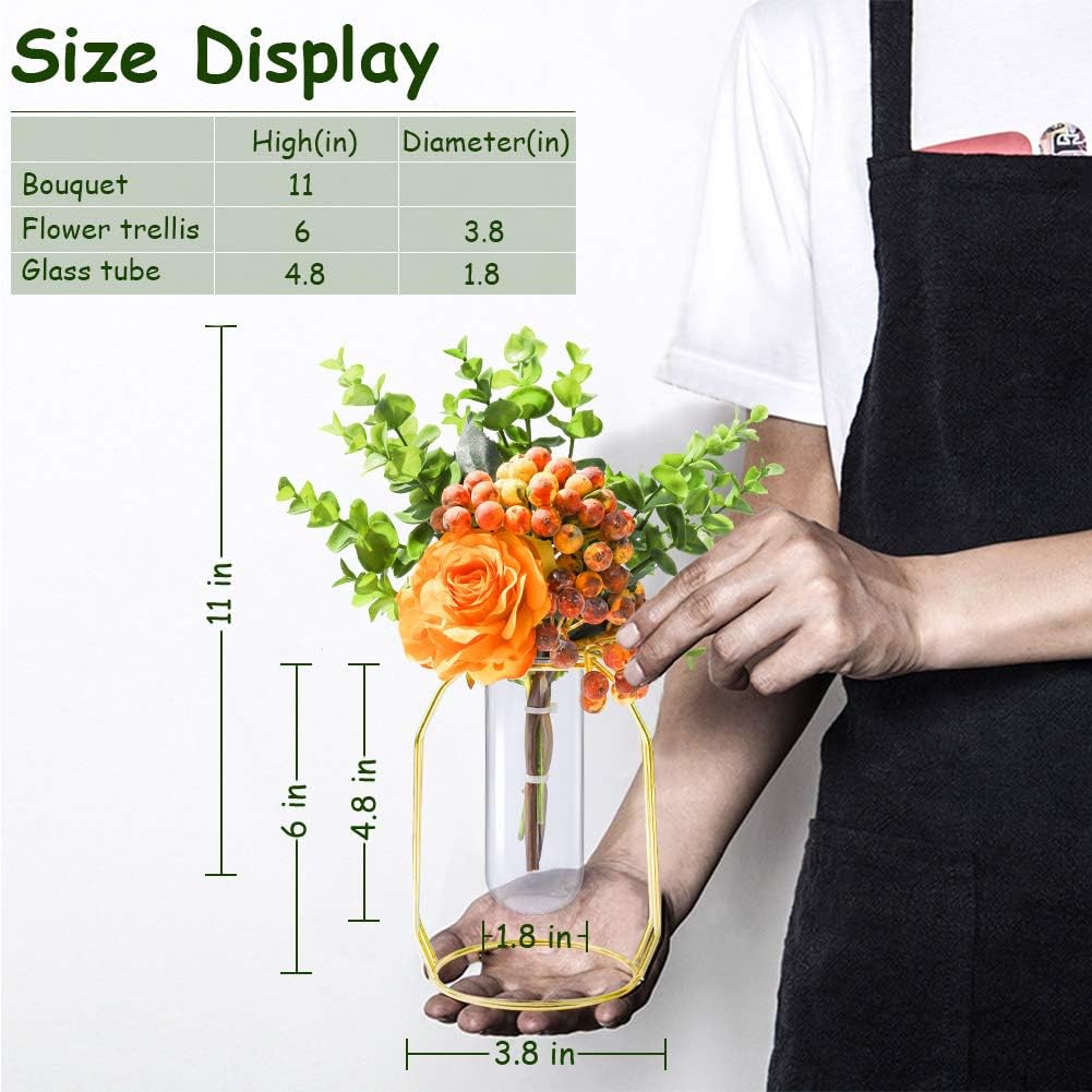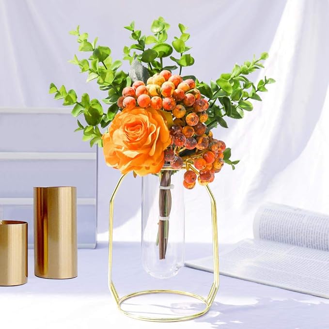 Artificial Flowers With Gold Vase Set 1 Piece Flower Arrangements Fake Rose Berry Eucalyptus Leaves Decor For Home Living Room Bathroom Plant Orange Kitchen Dining Amazon Com