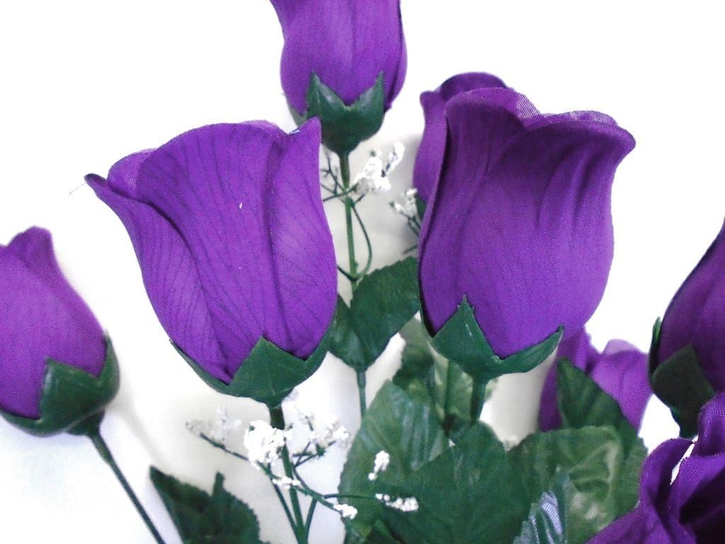 Amazon Com Rose Bud Bush 12 Artificial Silk Flowers 20 Bouquet 3974 Purple Home Kitchen