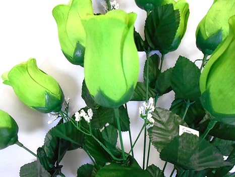 Amazon Com Rose Bud Bush 12 Artificial Silk Flowers 20 Bouquet 3974 Apple Green Home Kitchen