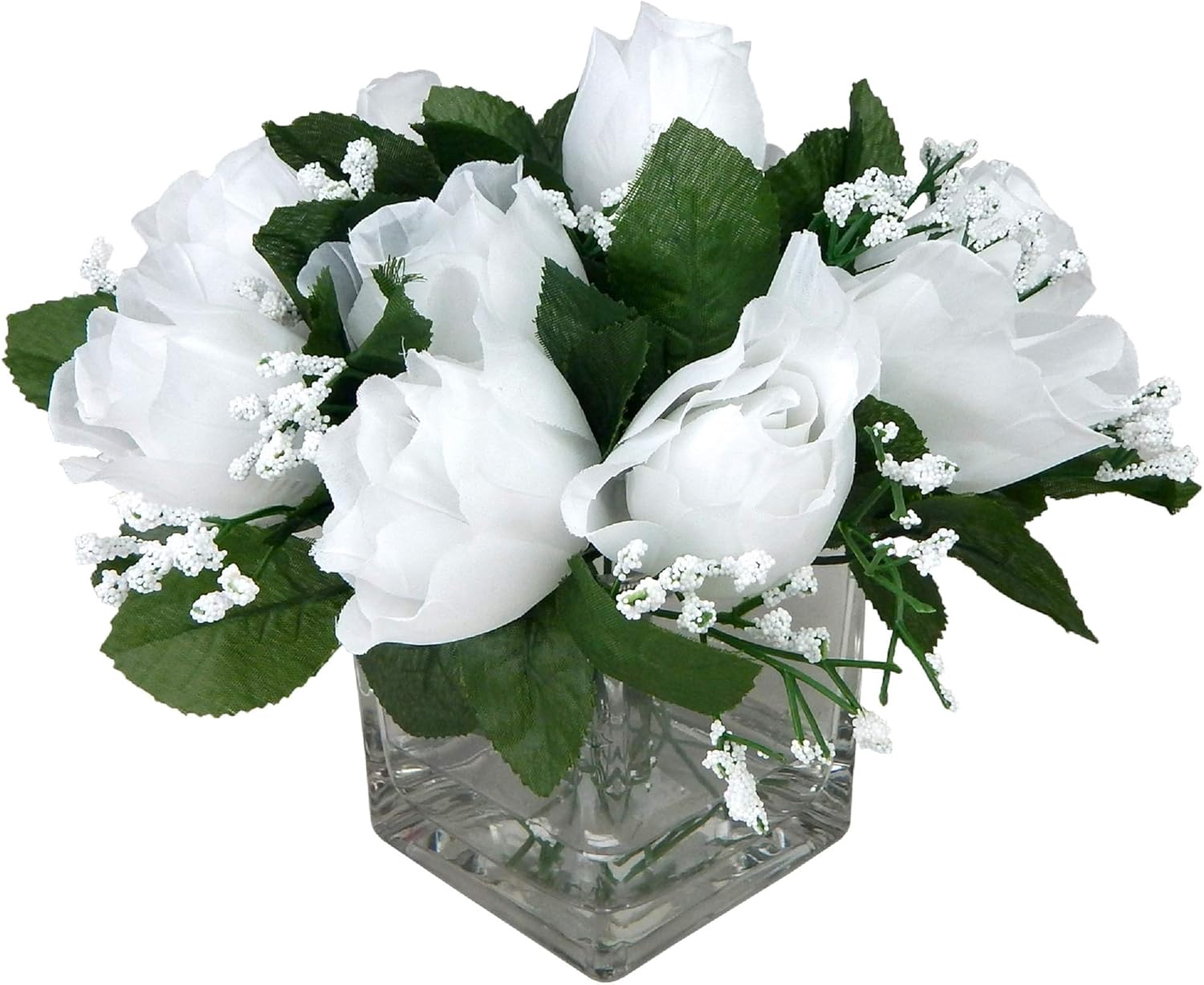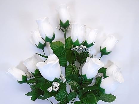 Amazon Com Rose Bud Bush 12 Artificial Silk Flowers 20 Bouquet 3974 White Home Kitchen