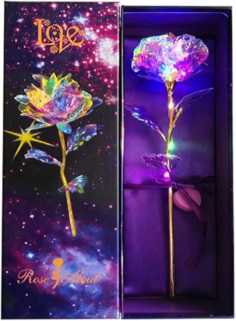 Zhmei Crystal Eternal Light For Mothers Day Gift Is The Best Choice Galaxy Rose With Base Of Love Arts Colorful Luminous Rose Artificial Led Light Flower Unique Gifts For Girls Crafts Multicolor A Amazon Co Uk