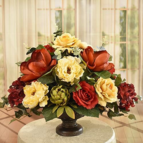 Amazon Com Burgundy Magnolia And Peony Grande Silk Floral Centerpiece Kitchen Dining