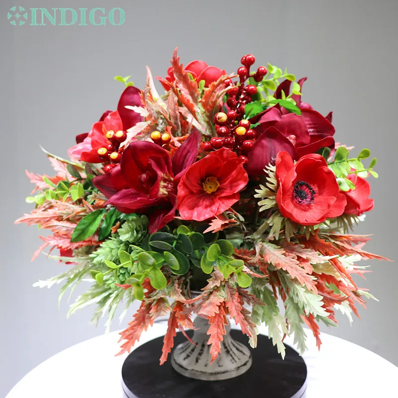 Indigo Designed 1 Set Red Anemone Christmas Table Flower Arrangement Bonsai Bouquet Table Centerpiece Gift Interior Trim Artificial Dried Flowers Aliexpress