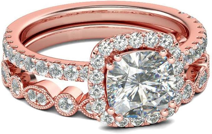 Amazon Com Mlide Rose Gold Marry Ring Cut 2 In 1 Square Cz Diamond Ring Set Valentine S Day Jewelry Gifts For Women Clothing